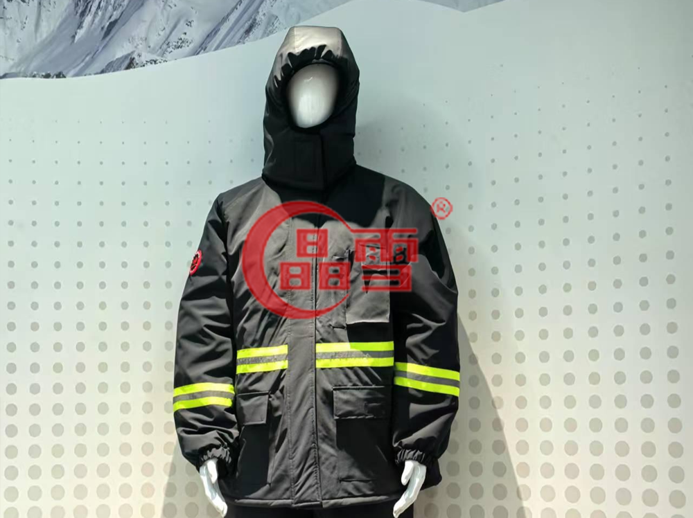 碳纖維冷庫防寒服采用NX-800型碳纖棉作為填充物,以達到極寒冷庫環境下,人體維持舒適體感所需要的保溫效率。服裝面料經由三防整理劑處理,可有效防止雨水、油污等物質。清潔只需簡易沖洗擦拭即可。服裝帽檐、門襟、膝部及腳腕部分經由特殊設計,充分提供熱量易損失部位的防寒保護。