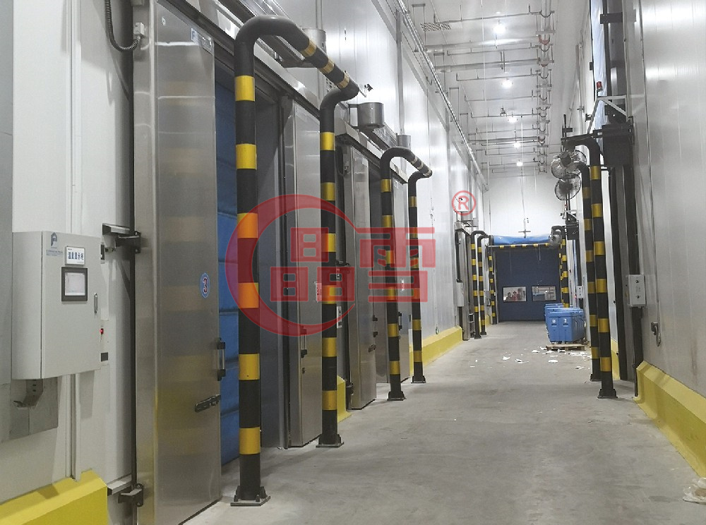 太古冷鏈物流有限公司高架冷庫為單層鋼結構外保溫式冷庫,儲存70,000托板以上。總建筑面積約44,119m2 ,總占地面積約38,000m2。主體冷庫墻板采用200mm接插式PIR庫板,防火墻采用200mm結構巖棉,夾芯板穿堂采用150 mm接插式PIR庫板,總庫板面積約為75000m2。